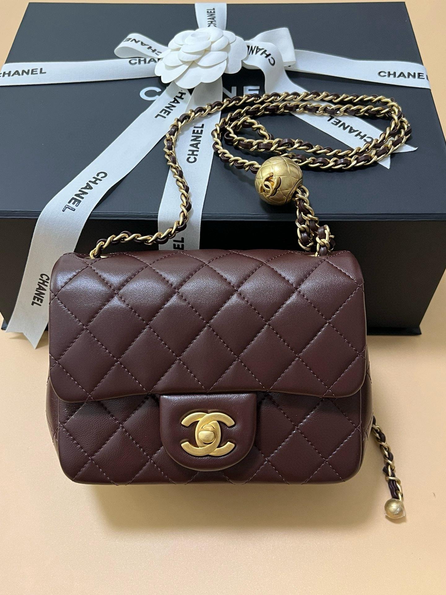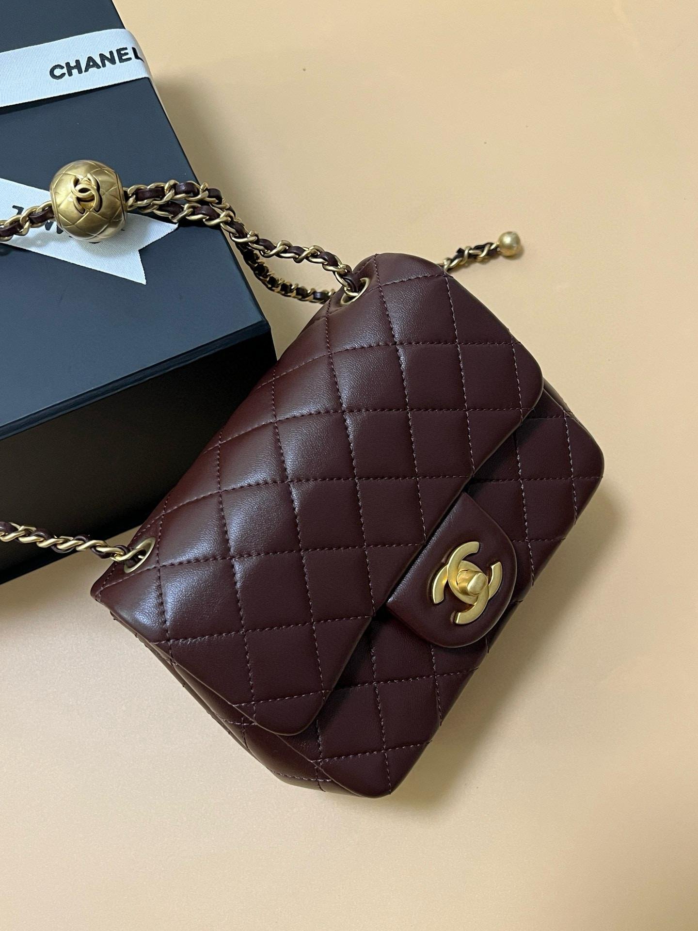 The popular gold ball bag is hard to find in the cabinet. Classic black, genuine “frame label” sheepskin, milky sheepskin, gold ball is very textured, adjustable length, very friendly to small people! The inner lining is golden fetal cowhide, not the market sheepskin lining!