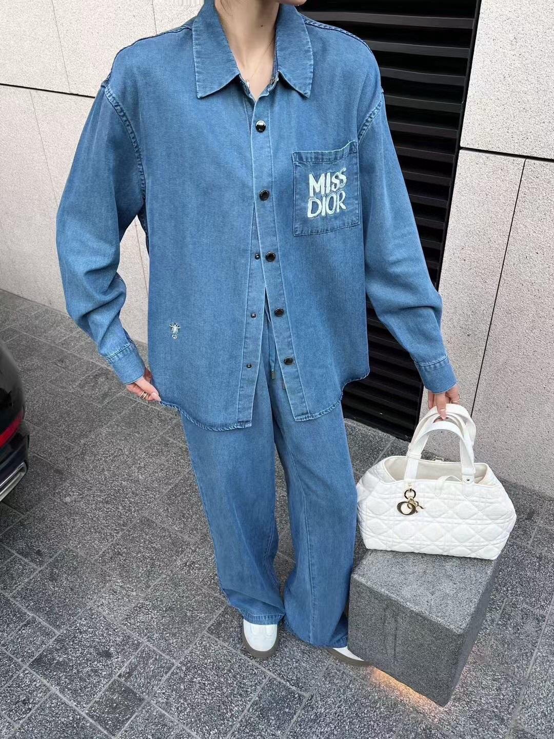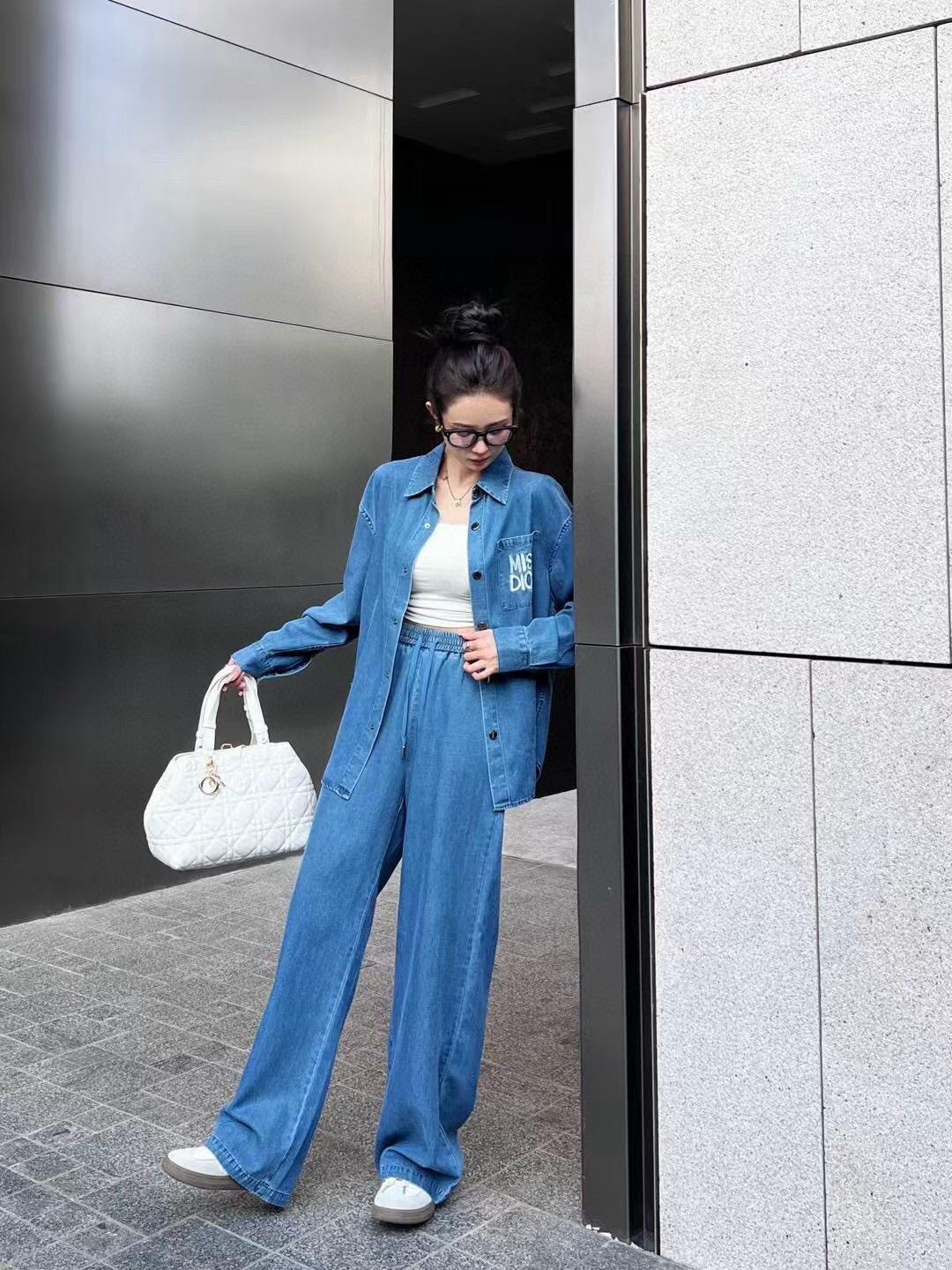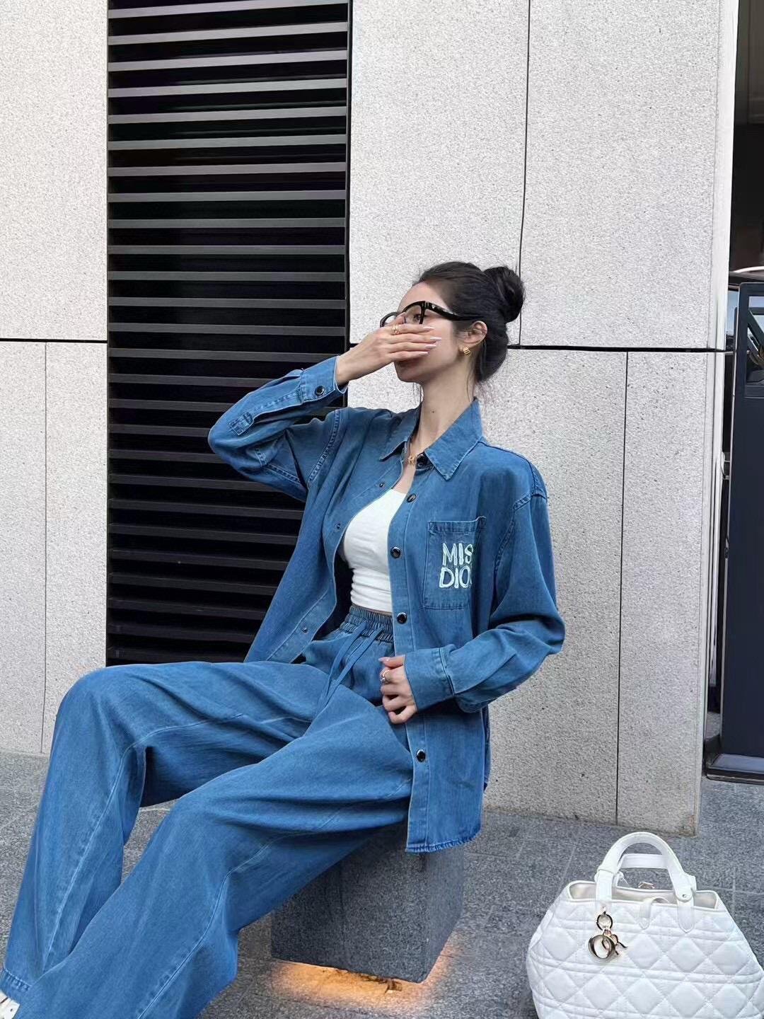 25Ss————The latest miss series denim suit 🩵loose long-sleeved shirt + elastic waist straight pants 🍓