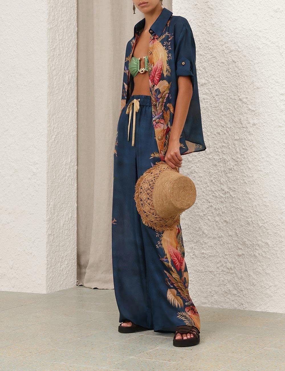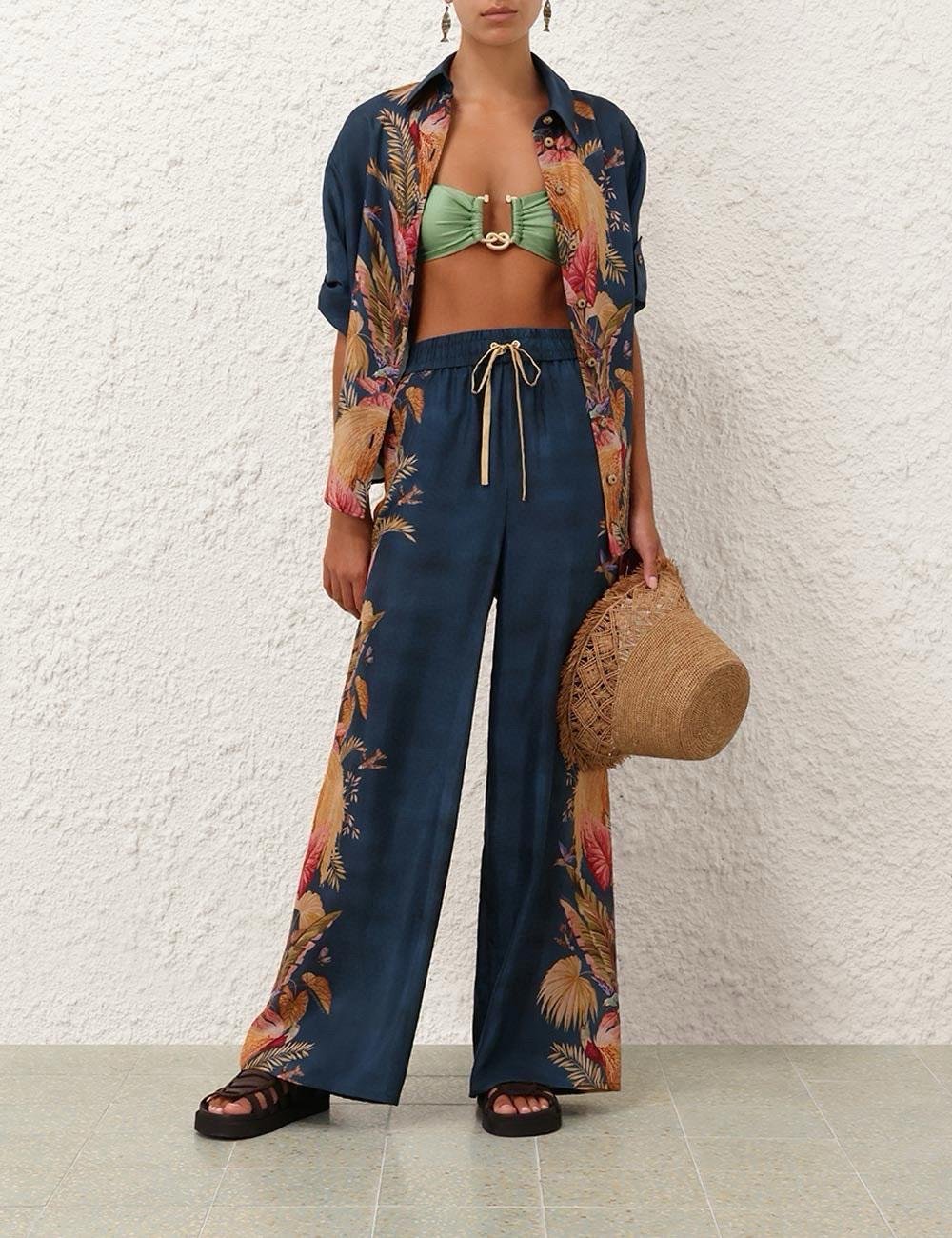 Zimmermann Ascension Relaxed Pant & Top In Dark Blue Floral